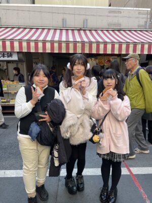 コロッケ片手に「次どこ行く?」なんて笑う学生たち。