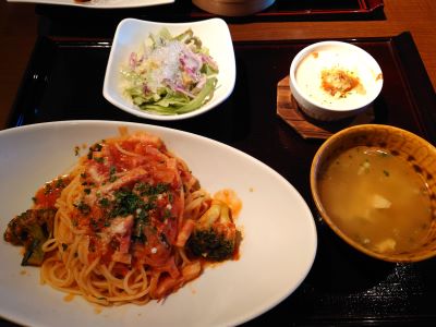 マリノさんの旅路のように、ランチメニューも多国籍。洋食、イタリアン、中華、エスニック料理などから選ぶことができました。季節的に蟹はのっていなかったけど、迷わずパスタを注文