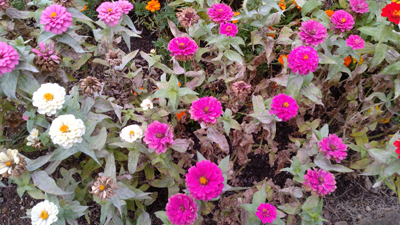 10月中旬、枯れた花が目立つようになってきましたが、そのままにしておきます。