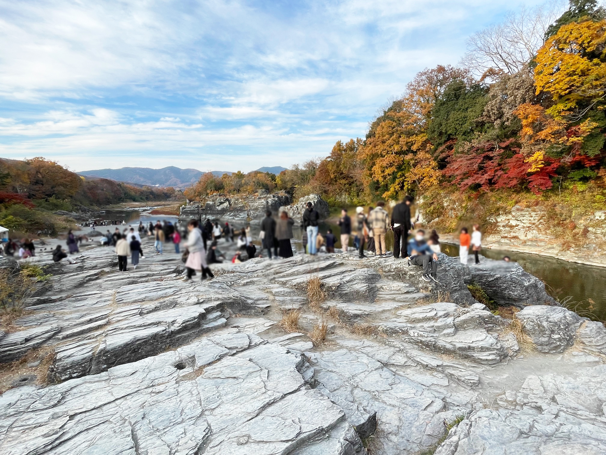 このむき出しの岩盤を「岩畳」といって長瀞の有名観光地になっています。