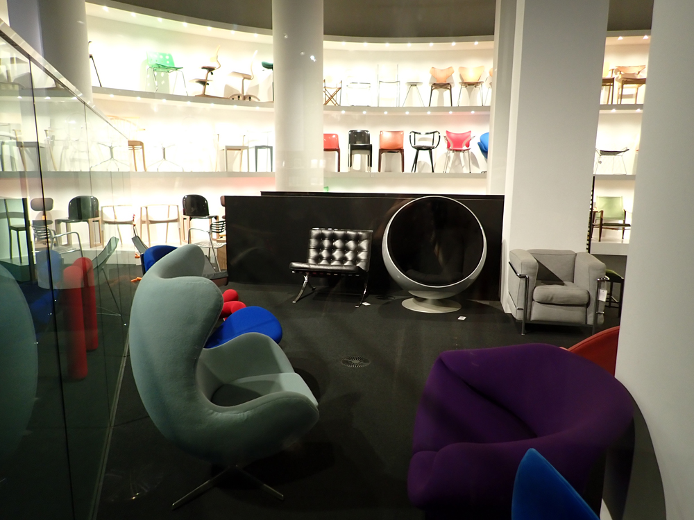 デザイナーズチェアが一堂に!学校内にあるんですね!