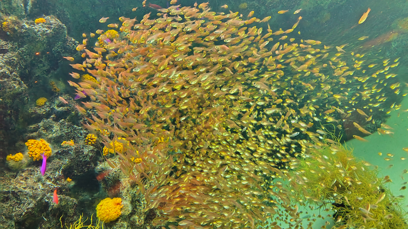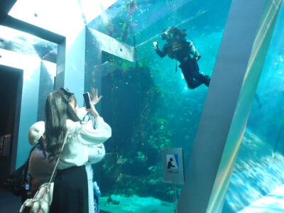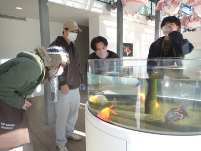 金魚や珍しい魚を前に「これ何ていう種類!?」と興味津々。
