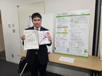 総合ビジネス科1年の糀颯斗君の作品【ゲームで農業体験『結ぶ農園』】が、