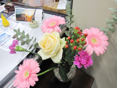 受付ではいただいたお花が