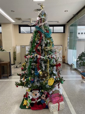 会場の入り口には大きなクリスマスツリーが飾られていました。