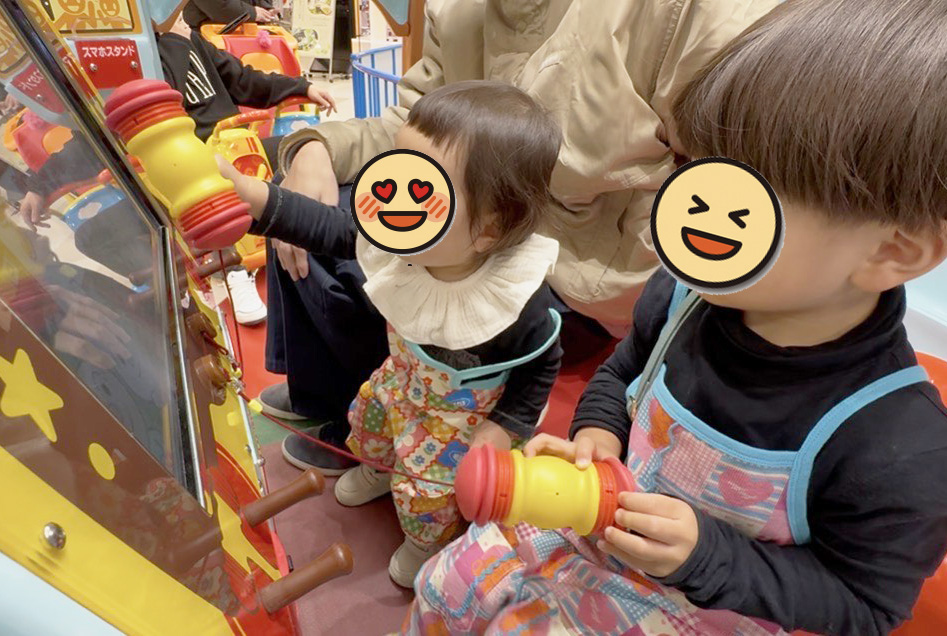 最近は、ゲームセンターを通ると2人共 泣く子も黙るアンパンマン様 のゲームに駆け寄り、お金の投入口を指さしてきます![]()