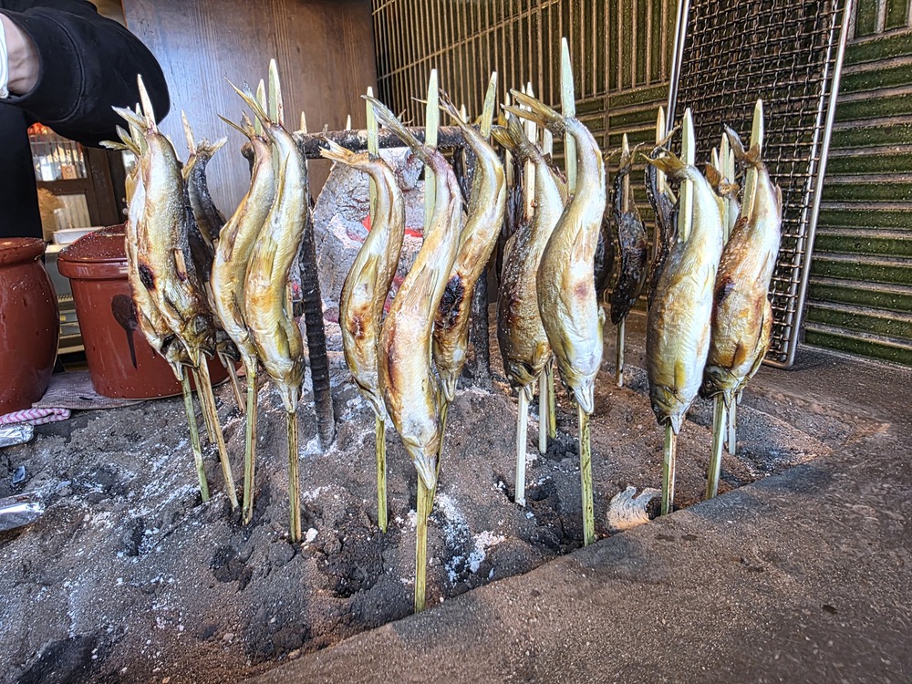 炭火で焼かれた鮎は、外は香ばしく中はほろほろ。