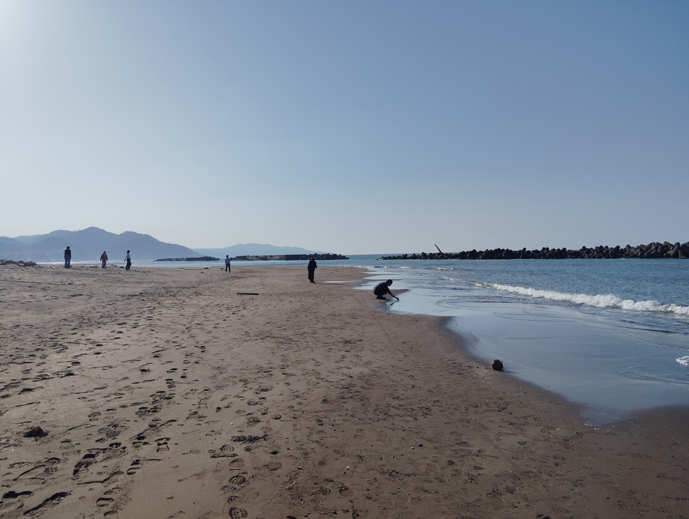 ふと気づくと、周りで貝殻を拾い始めていた我が家の人々です