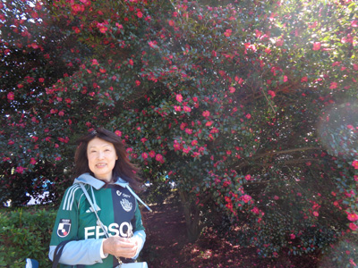 入り口の大木のさざんか。相変わらず華やか。
