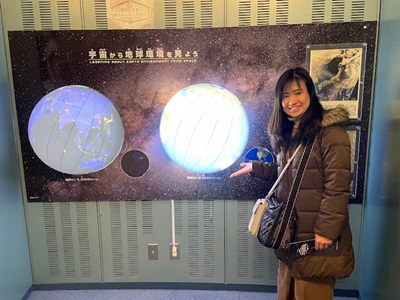 展示ロビーで、宇宙から見た地球を観察し