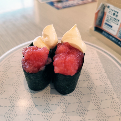 お寿司の呼吸でたらマヨも頼んじゃいます。