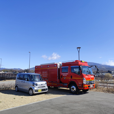 イベント開始時間の少し前に着きました。消防自動車の隣に駐車しました。
