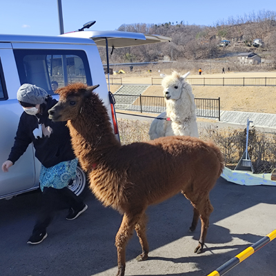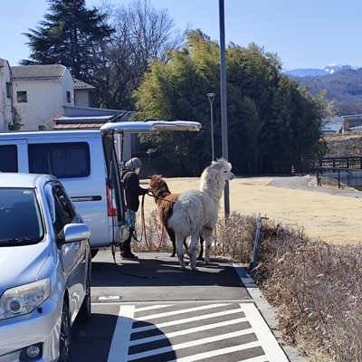 お目当て①のアルパカさんが車から降りてきました。