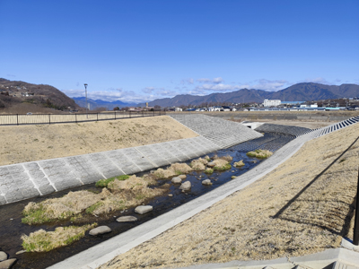 公園の横の河川はキレイに整備されていました。