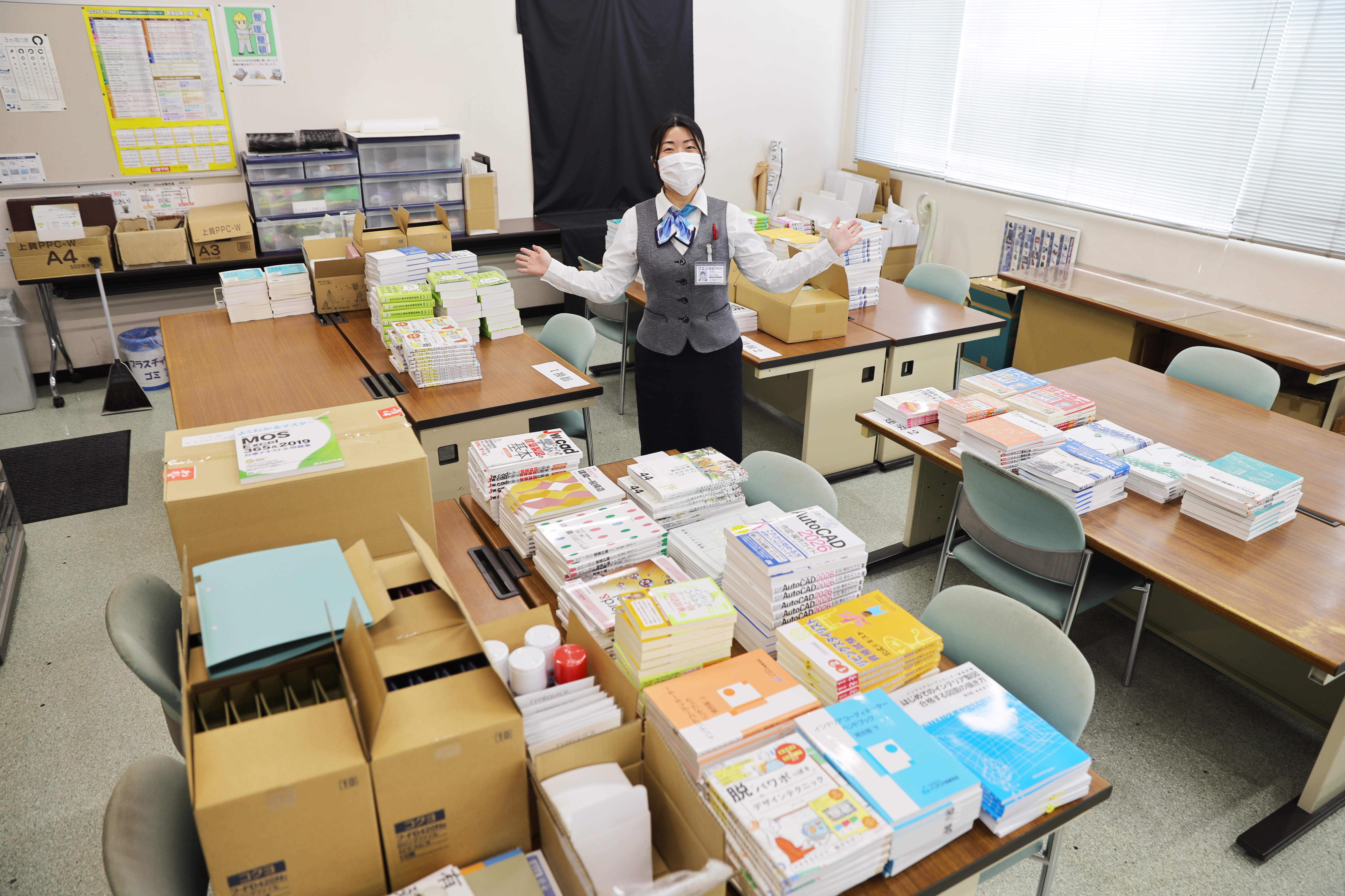 全学年全学科クラス分の教材を発注から搬入まで行います。