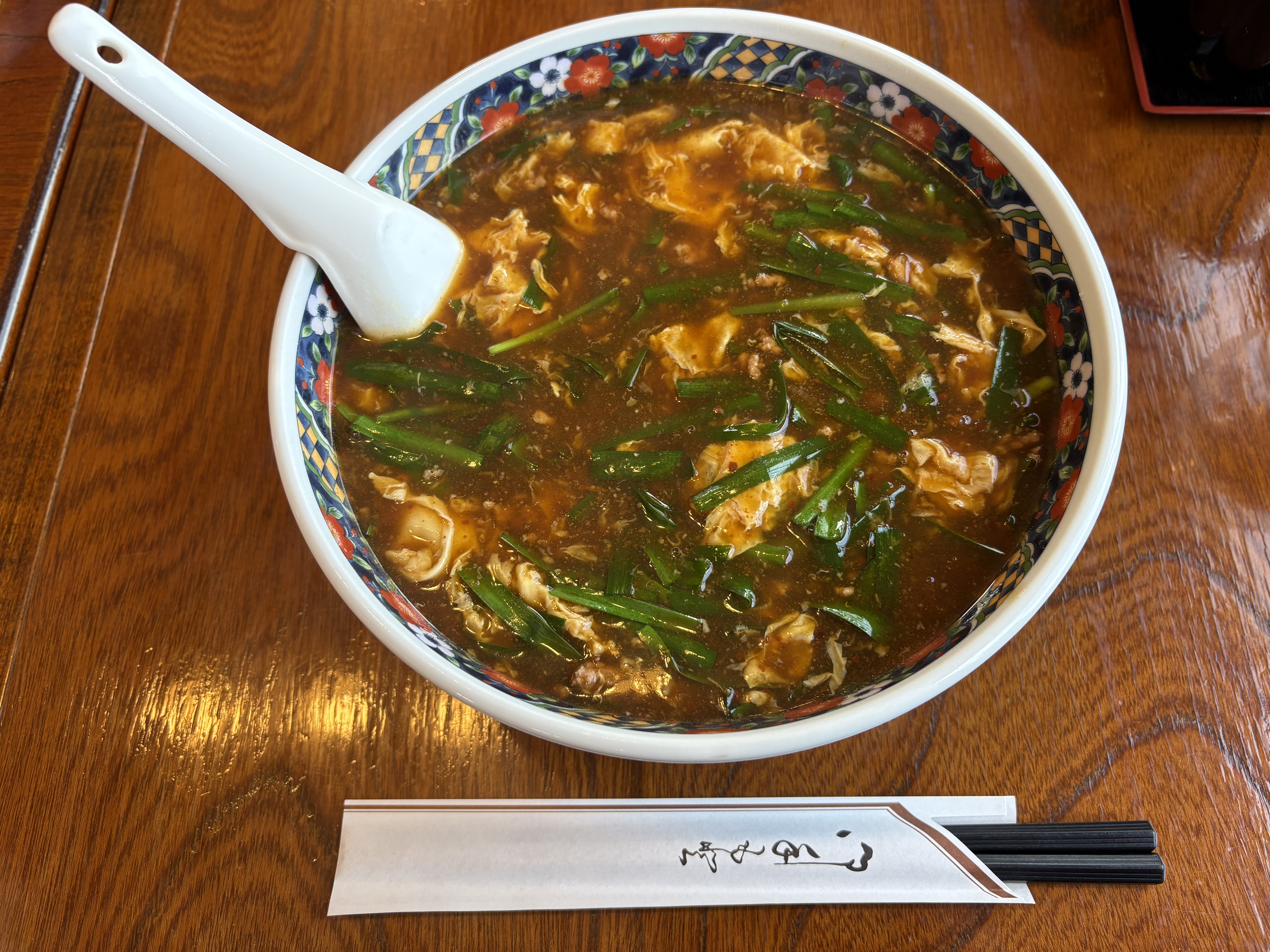 少しとろっとした餡のようなスープにちぢれ麺が最高でした![]()