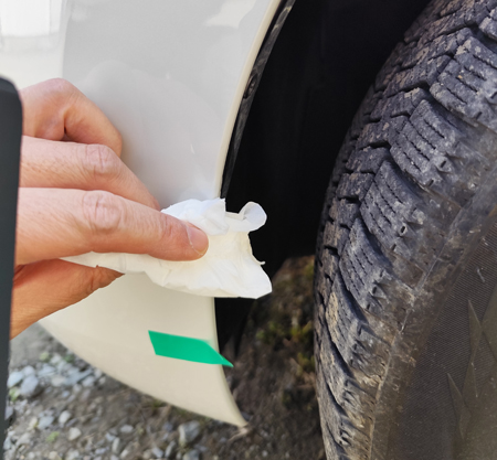車外用の両面テープで取り付けるため、接着面をきれいにします。