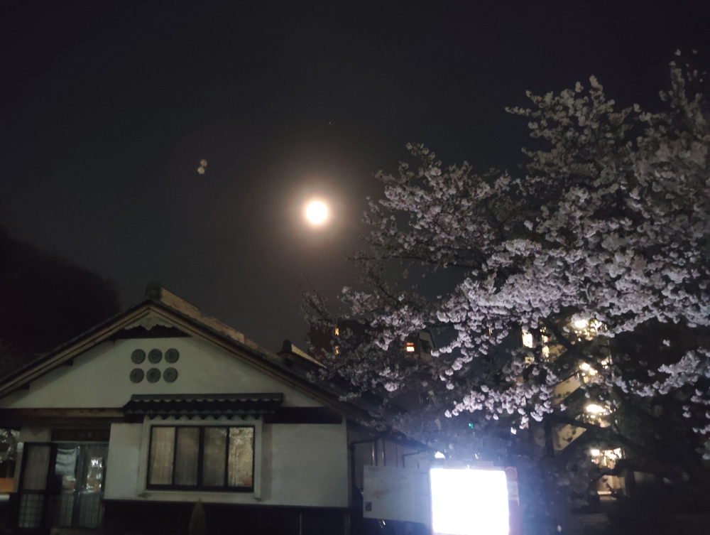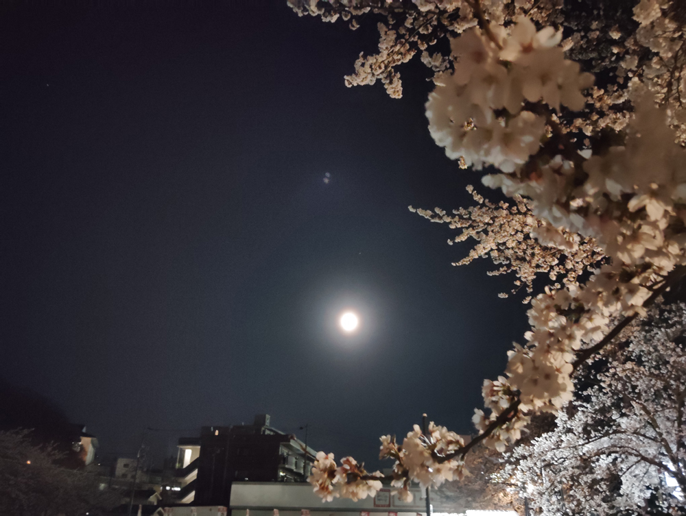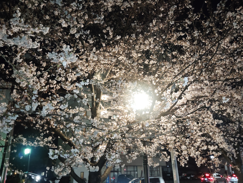 月夜に照らされた桜も風情があります